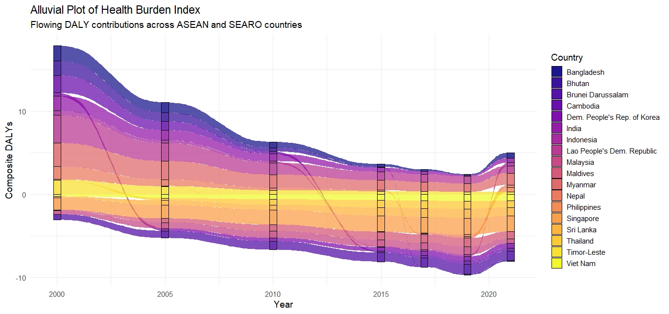 Health burdens have shifted across ASEAN and SEARO countries over time